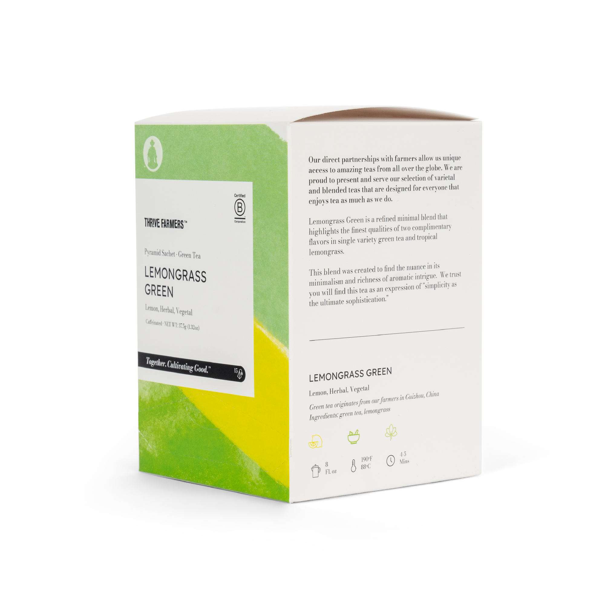 Lemongrass Green is a refined minimal blend that highlights the finest qualities of two complementary flavors in a single variety of green tea and tropical lemongrass.