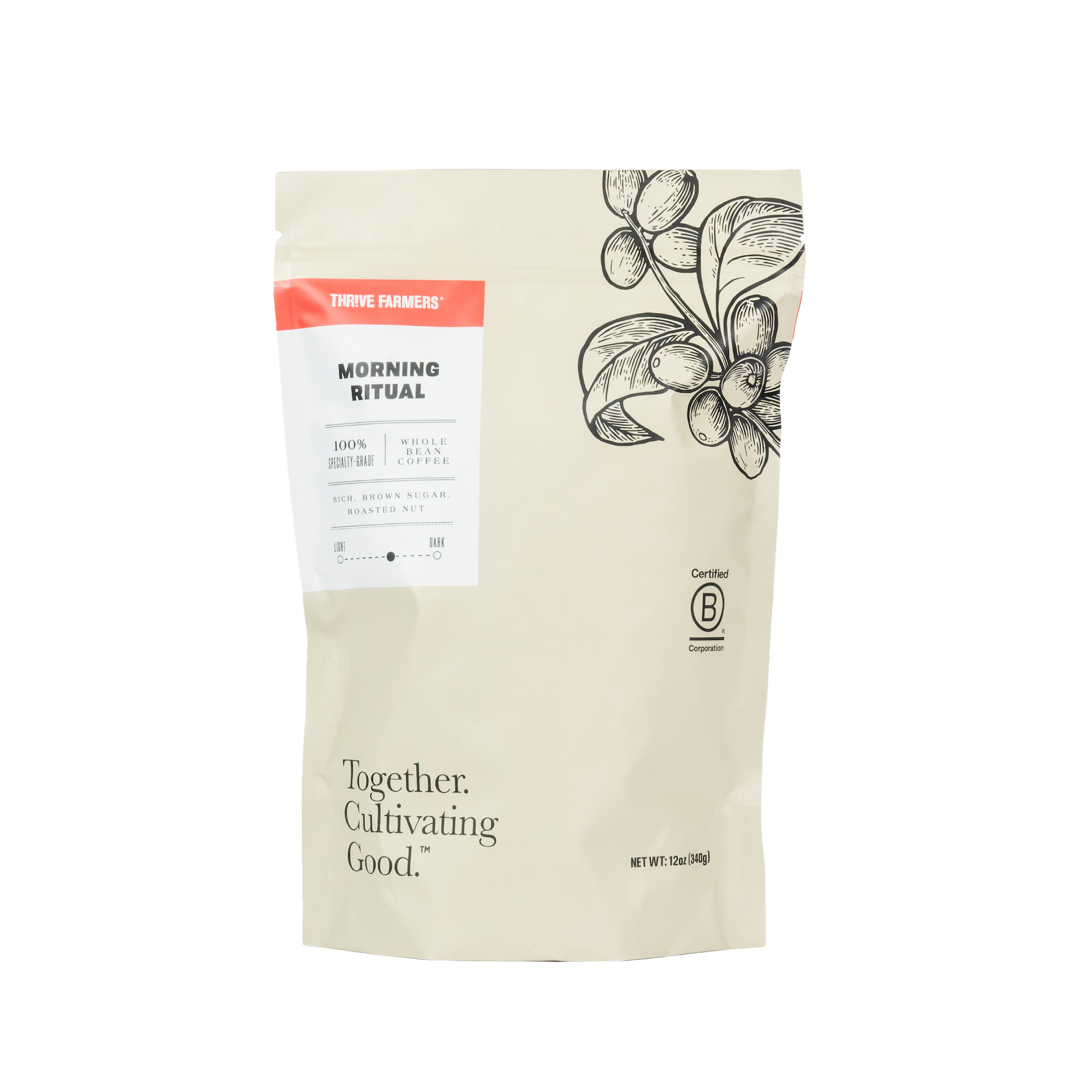 Morning Ritual is exactly as it sounds, a coffee to start your day, every day! The rich notes of roasted nut and chocolate make for the perfect backbone for this coffee. The notes of brown sugar round it out, making it a great coffee for the coffee purists and those who want a little cream and sugar. Enjoy a cup of our Thrive Farmers® specialty coffee today!